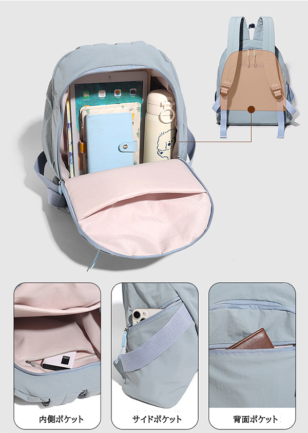 YouTubeショート動画があります! ■コメント ・15.6インチのPC対応、カラーバリ豊富の軽量リュックサックです。 ・シャリ感のある軽やかな風合いとシンプルなデザイン。 ・サイド、背面、内側にポケットがあり収納力バツグン。 ・撥水加工の軽量のナイロン製のため、雨の日◎ ・幅広いコーディネートに合わせやすいアイテムです。 ※5点以上~ご注文の場合、より『お得』に!是非ご活用ください。 ■サイズ(約cm) 画像に記載/300g ■カラー 画像に記載あり ■素材 ナイロン ■裏地 あり ■内ポケット あり