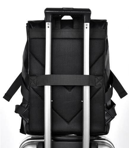 防水加工を施したブラックカラーで、書類やノートパソコンもしっかり収納可能。
